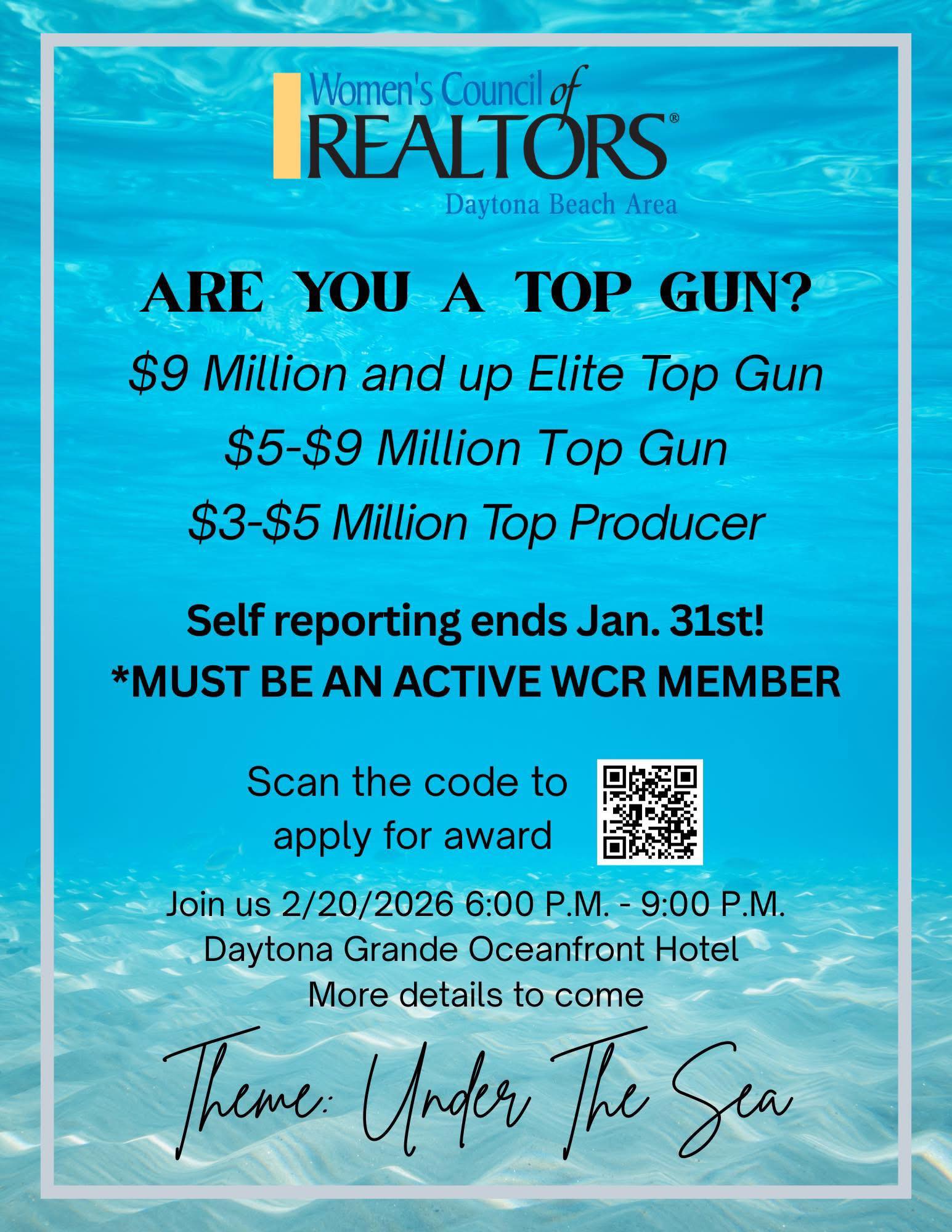 The Women’s Council of REALTORS® Daytona Beach Area is now accepting self-reporting for our Top Gun Awards!